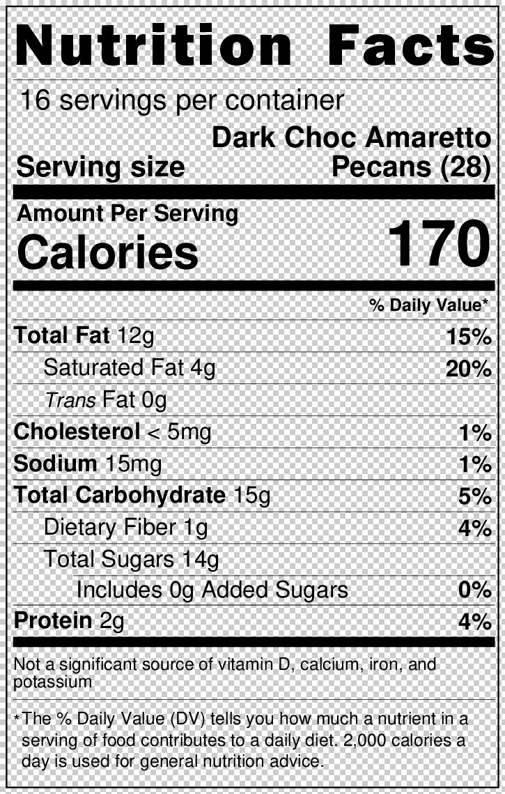 Keywords: Dark Chocolate Amaretto Pecans