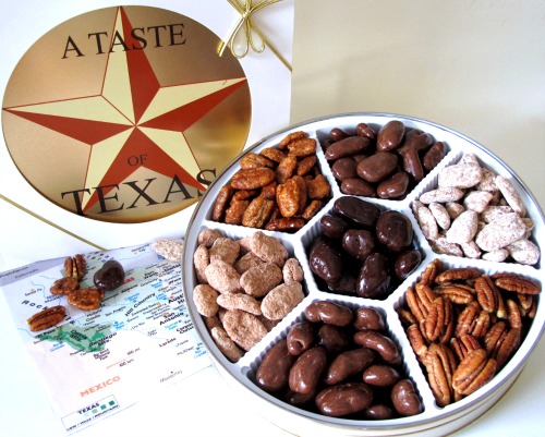 New! We've added this sampler pack to our family of pecan gifts. Seven delicious ways to enjoy pecans - Dark Chocolate, Honey Toasted, Chocolate Amaretto (does not contain alcohol), Praline, Milk Chocolate, Cinnamon, and Fancy Roasted Salted. Total weight is about 2.25 pounds.